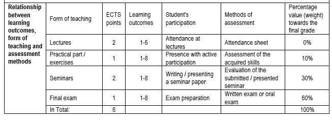 Learning and behaviour: learning theories/types of learning, strategies and learning techniques, motivation, memory disorders, forgetting, concentration, exercises and strategies for the improvement of attention, teaching, behavioural modification, didactic basics of organised forms of health education, working with an individual and family, working with a small group, working with the community, group dynamics, various forms of group work.