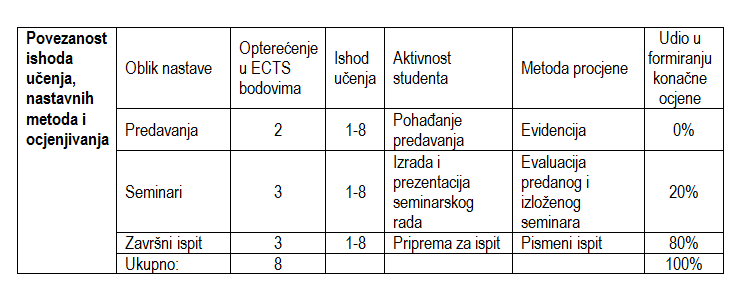 Nakon odslušanih predavanja, seminara, samostalnog učenja i položenog ispita studenti će moći: