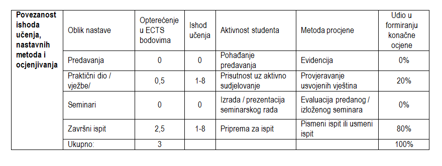 Nakon uspješno završenog kolegija student će moći: