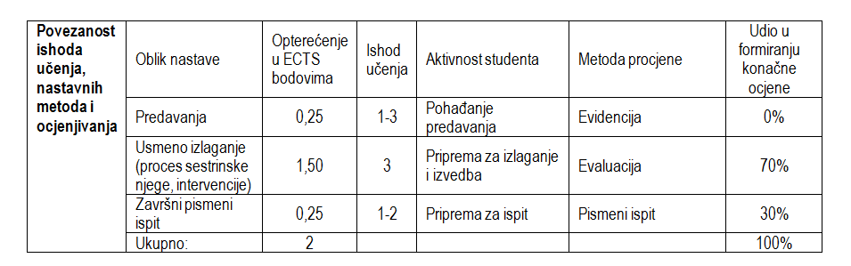 - identificirati najvažnije dijelove tjelesnih sustava, objasniti njihove funkcije, prepoznati i definirati najvažnija/najčešća oboljenja pojedinog tjelesnog sustava i s tim u vezi proces sestrinske njege (sestrinske intervencije);