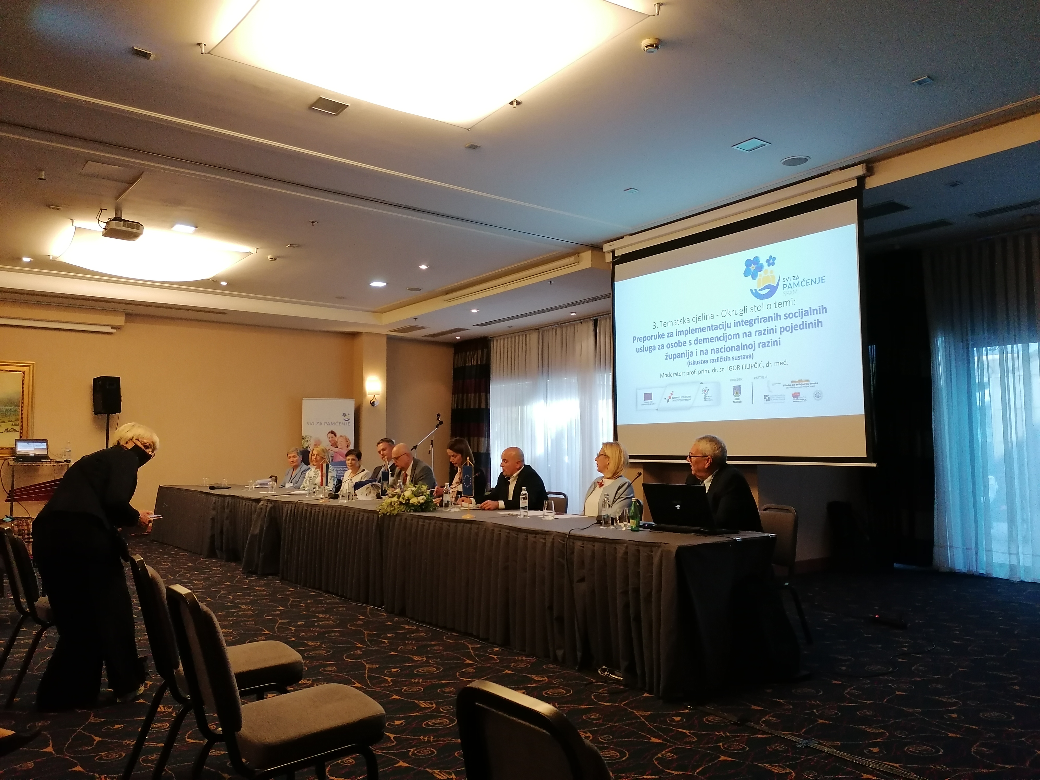 U okviru konferencije održan je i okrugli stol pod nazivom „Preporuke za implementaciju integriranih socijalnih usluga za osobe s demencijom na razini pojedinih županija i nacionalnoj razini (iskustva različitih sustava)“ na kojem je u ime Fakulteta sudjelovala doc. dr. sc. Štefica Mikšić, prodekanica za suradnju s nastavnim bazama. Izlaganje pod nazivom „Usporedba usluga usmjerenih na osobe s demencijom i njihove obitelji na području Grada Zagreba i Osječko-baranjske županije te preporuke za pokretanje dnevnih boravaka“ održala je Anamaria Tomić, mag. log., nastavnica našeg Fakulteta i zaposlenica na projektu.