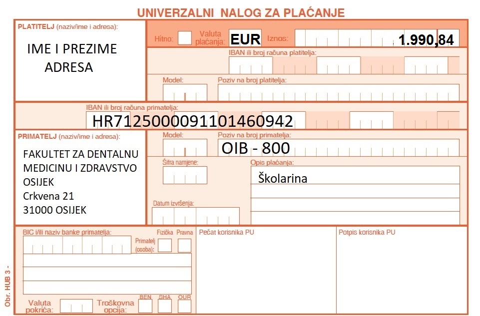 Primjeri uplatnica: